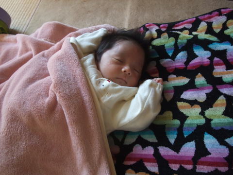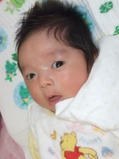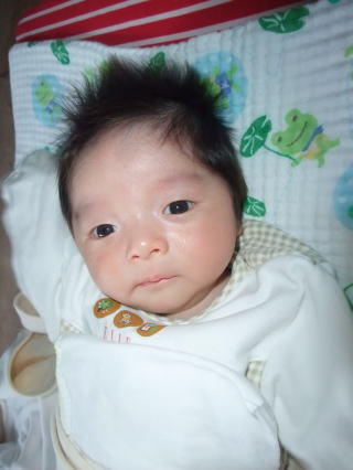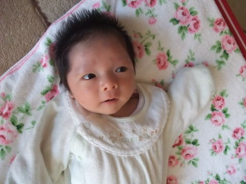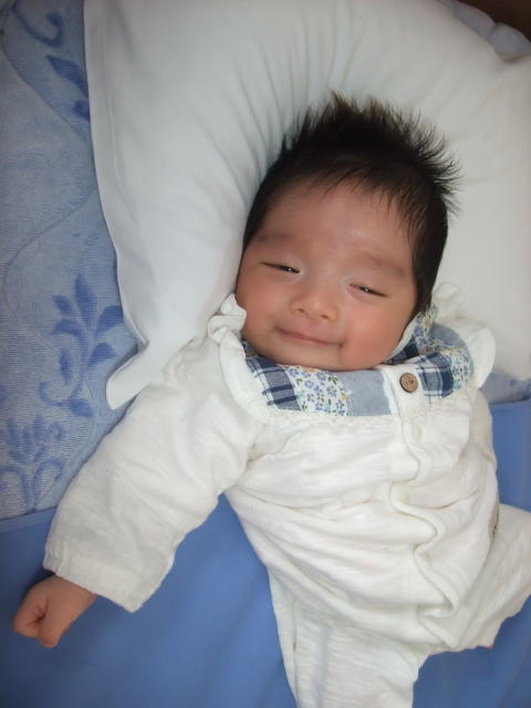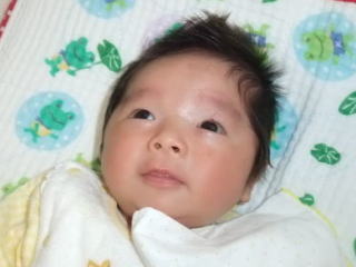 |  | 今日はロクノスケが生まれて1ヶ月のお誕生日なので、お祝いです。 |