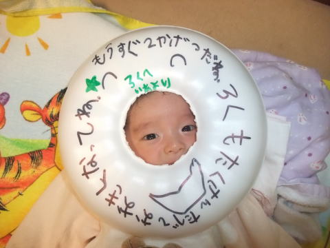 |  | そうそう、ロクノスケが退院する日にあわせて、「ろく、おめでとう」って作ったんだよ。