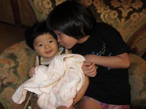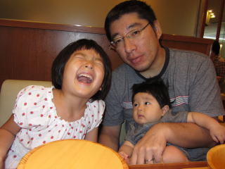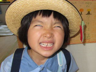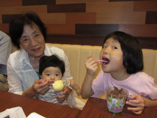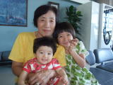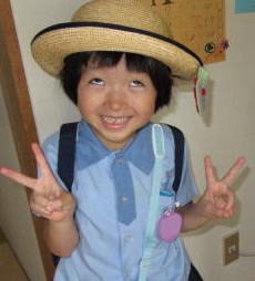 |  | 今日から幼稚園も新学期 のはずでしたが、依亜はオタフクのため出席停止だよ。それなのに外出してイイのかな? まっイイか。ババがお見舞いに来てくれたんだから、サービスだよ!?? |