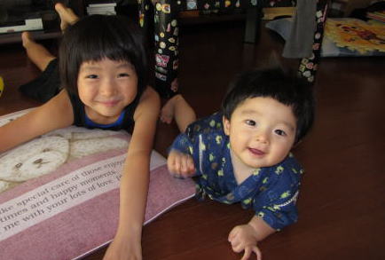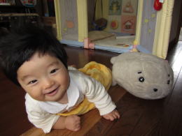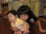 |  おねえちゃんと一緒なら、いつもニコニコのろくのすけ君 | |