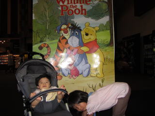 | ぬいぐるみたちと記念撮影・・・  | そのあとは ぬいぐるみたちの映画、くまのプーさん  ちなみに依亜は、イーオの真似だそうで・・・ |