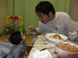 |  | 丘プールで楽しんだあとは、こちらもお楽しみのご飯の時間ですよ。 結構、何でも食べさせてもらっています。  |