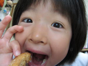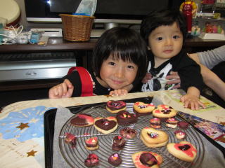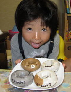 | おとさんの会社にいるお姉さんから、こんなに可愛いドーナツをもらいました。ありがとうございます。  | 依亜も負けずにお菓子作っちゃいました。  |
