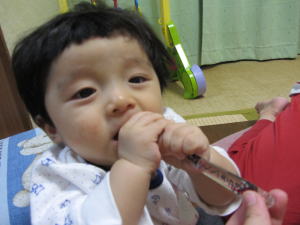| 緑之助は賢いなぁ では、7ヶ月の誕生日を 祝ってあげるね。 |  |