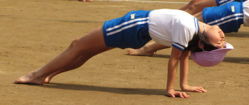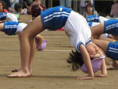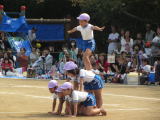 | 最大の見せ場「組体操」が終わったけど、気を抜かずに真剣な表情  |  先生から組体操「100点満点」もらったよ! あれ?先生泣いているの? |