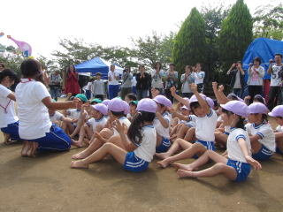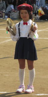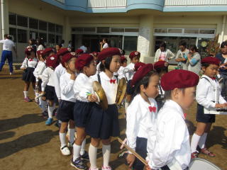 | 午後は鼓笛です。年長さんの人数が少ないため、シンバルは1人だけ。間違えたら大変です。 緊張しすぎでは??  |  |