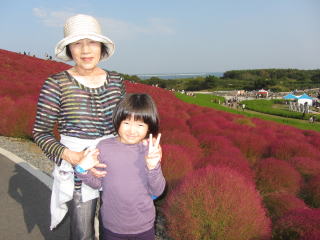 | コキアというお花が見頃なんだって  | 依亜は一足お先に遊園地に戻りました。おかさんとババの二人は景色を楽しんだみたいだね。  |