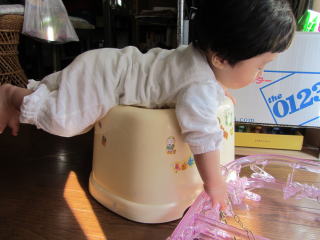 |  | お姉ちゃんが幼稚園に行っている間、僕はこんな遊びをしています。 ふざけすぎて、転げ落ちることもあるけど、そんな時は大きな声で、おかさんを呼びます。 「たすけて〜」ってね |
