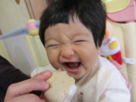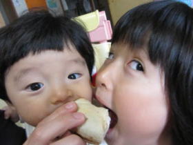 | 姉、パンを食べる  | 弟、歯を磨く  |