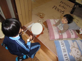 |  | お姉ちゃんが太鼓を叩くよ バチさばきを見ていてね |