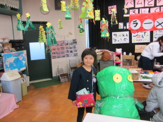 | 今日も元気に 幼稚園にいってきまーす  |  千羽鶴をお友達とたくさん折ったよ どこに持っていくのかは内緒 |