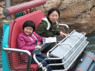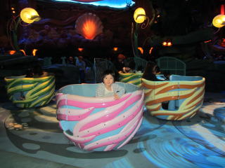 |  ティーカップは、おとさんもおかさんも気持ち悪くなっちゃうんだって! 依亜1人で乗れるからイイモンネ | |