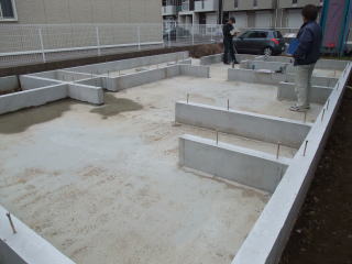 |  | おとさんだけ新しいお家に行ってきたんだって。 11月29日に作ってあった基礎がキレイに完成したから、家の1階のカタチが何となく分かるね。 あそこがキッチンでしょ。階段はココ。 |