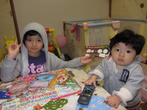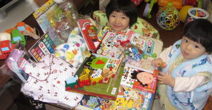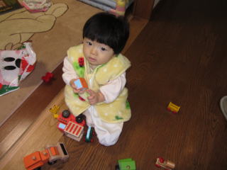 | イーッパイもらっちゃった |  ロクは絵本とミニカーをもらったよ。 初めてのクリスマス。サンタさんはロクが生まれたのを知っていたね。良かったね。 |
