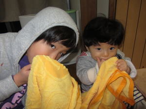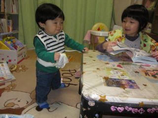 | おねえちゃん、どこ行くの?  | おとさんと二人でお出かけだよ〜  |