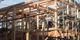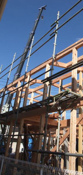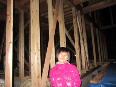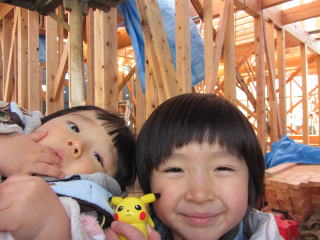 |  | 自宅の建築現場を見学です スゴイスゴイ 柱がいっぱい  |