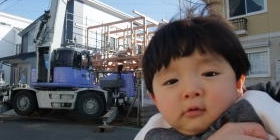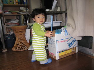 | おとさんは建築現場へ まだ壁はないけどね  | 緑之助は、寄りかからずに立つ練習  |