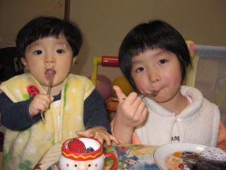 |  |  今日のケーキ作りも大成功! |