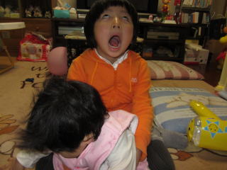 | ぼくは ぼうりょくに うったえるぞ!! どりゃー おねえちゃんに アッパーカット (右の写真にマウスを合わせてみてね) |   |