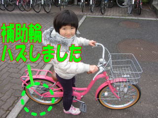 | 冬休みの目標 「自転車の補助輪をトル!」 で、いきなり外されてしまいました・・・ 怖いけど、ガンバルゾー  | |