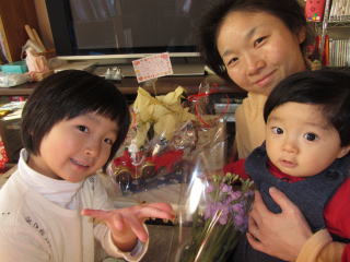 |  | おとさんとお散歩 おかさんへのクリスマスプレゼント お花をたくさん買ってきたよ |