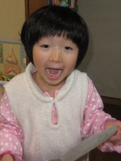 | 昨日の食べ物 おいしいぞ  | チーズケーキっていうケーキだよ おねえちゃん手作りだからね。 幼稚園の先生たちにもプレゼントしたよ。  |