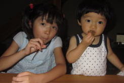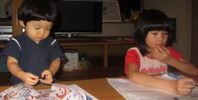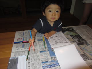 | お姉ちゃんやお父さんがお出かけしたあとは、お絵かきしたりして楽しんでいるよ  |  プルプル ツルン ぶどうが甘くて美味しい |