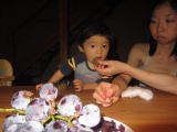 | 今日も、美味しいブドウを分けあって食べるお二人さんです。  | |