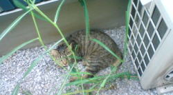 | お外で僕を呼んでいたのはネコちゃんだったのね。お隣との隙間にコネコも3匹。  ミルクをあげたら、お母さんネコが一気に飲み干したよ。赤ちゃんにもオッパイあげてね。 | |