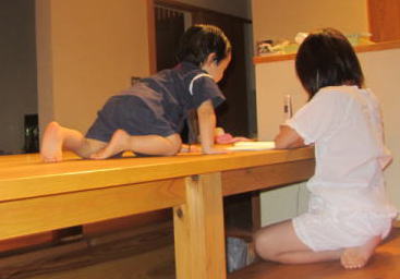 |  ババが遊びに来てくれました。 ババは依亜と遊んだりお話したり 緑之助を抱っこしたりするのが 大好きなのです。 | ||||