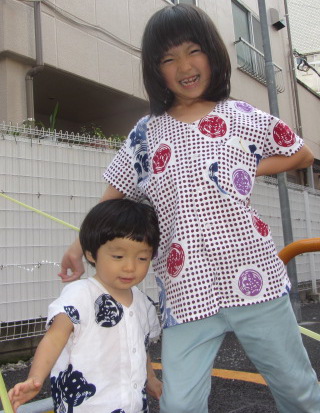 | 気づきましたか? 今日のお衣装も姉弟でお揃いなんです。 色違いではありますが、このあたりでは売っていない、特別なシャツですよ。 | ||||