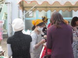 | 小学校のバザーです お母さんもお餅の販売員で、大忙しですよ  | 出来たてのお餅が柔らかくて美味しいよ  | |||