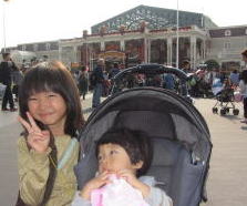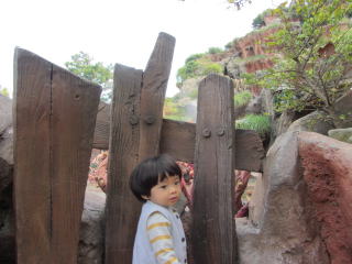 | お姉ちゃんが、あの滝上から乗り物に乗って、ウギャーッて落ちてくるんだよ。 「スプラッシュ・マウンテン」に何回乗れば気が済むのかな?  ・・・結局、8月に行ったユニバーサルスタジオの「スペースファンタジー・ザ・ライド」と同じ7回のヘビーローテーションでした | ||||