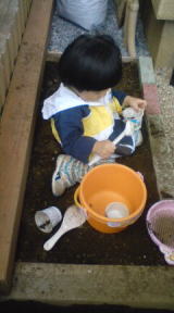 |  | こちらは歩いて2秒の公園。 お父さんがお庭の隅にお砂場を作ってくれたんだ。 だって10秒公園にはお砂場がないんだもん  |