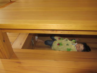 |  | 緑之助のお昼寝 特等席 眠くなったら、ズリズリっと潜り 掘り座卓の下でゴロ〜ン |