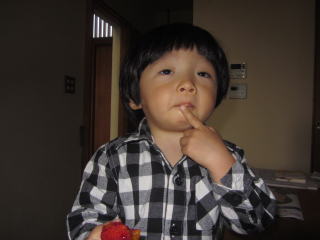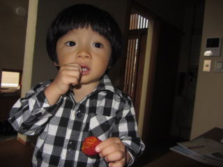 | イチゴの木の実を食べてみたよ  | う〜ん デリシャス  (本当かな・・・ゲゲッ不味くはないし 果汁はあるけど、味はないよね) 緑之助だけはお気に入りのようです |