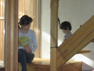 |  | 我が家のリビングには低いカウンターがいくつも作り付けられています。 テレビやパソコン台、飾り棚として使う場所ですが、座ったり乗ったりしても良いことになっています。 子供たちのステージなのです。 |
