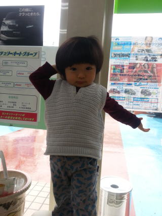 |  | おとさん、新車の契約みたいです。 14歳のレガシイ君はご機嫌ナナメが続いているようなので、思い切って買い換えちゃうんだって。。。レガシイ君カワイソウだなぁ。  今度は初めての軽自動車になりますが、軽だからといって容赦はしない父。三者見積を繰り返して、ご希望通りのネギリに成功して、ご満悦の顔ですね。 |