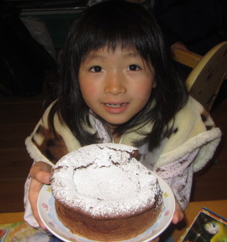 | 秋から冬へ  依亜お手製、チョコレートケーキの完成! これが意外や意外 周りの方からも賞賛の嵐 本人もパティシエとしての意欲が湧いてきた・・・かな? | |