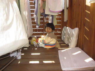 | ベランダで洗濯物と一緒に日向ぼっこ  | |