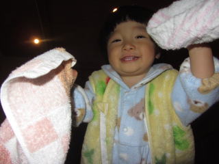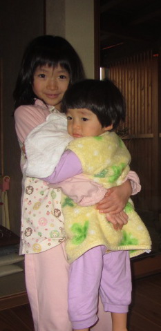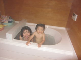 | 最後の日も姉弟は仲良し 早めにお風呂に入って 紅白歌合戦に間に合わせるの |  |
