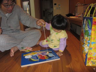 | サンタさんにお願いしていた「アクアビーズ」が届いたよ  |  緑之助は「釣りパズル」をもらったよ かなり気に入ったみたい |