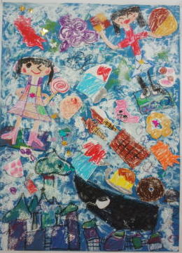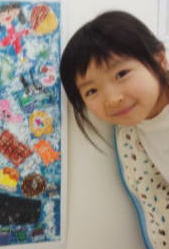 |  | 学校で書いた絵が 近くの会社のショールームに展示されたよ  選ばれるなんて思ってもみなかったよ みんなに見てもらえるなんて嬉しいな |