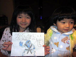 | お姉ちゃんが僕のためにお絵かきしてくれたよ。僕がお気に入りのポケモンの「ダゲキ」なんだ。 とーっても上手に書いてくれて、お姉ちゃんは凄いなぁ。ありがとう!! |  |