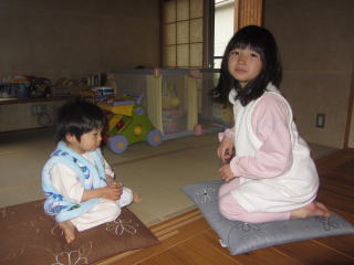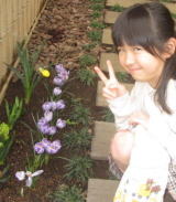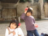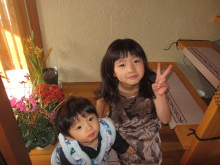 |  | 春休み 従妹のモモちゃんと遊んだよ おそろいのお花の髪飾り 可愛いでしょ? |