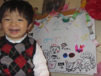|  | 2歳! 皆からもプレゼントをもらったよ |