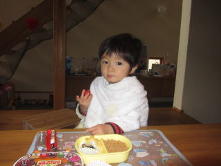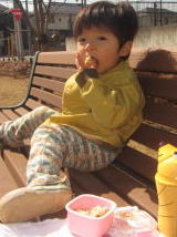 |  | ババちゃんに公園に連れてきてもらいました。 この後、病院帰りのお父さん、お弁当を作ってきてくれたお母さんも合流し、ピクニックをしました。 |