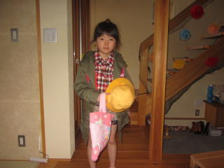 | 1年生もあっという間に終わり 黄色いランドセルカバーも卒業です  | お父さんの会社に授業参観に行きました。。。というより、目的は2つ 会社の優しいお姉さんが辞めちゃうから、プレゼントを渡しました。 お母さんからは以前お世話になった方が定年退職とのことで、お祝いを渡しました。  |