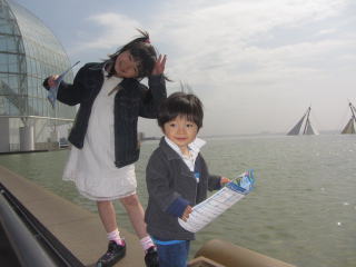 | 水族館(葛西臨海公園)  | 建物の上に上ってきたのに、海があるわ ・・・どうなってるの?  |