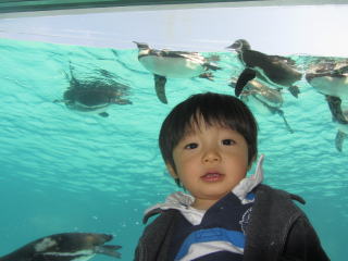 | ペンギンって泳ぐんだね  | このペンギンは動かないね でも僕より大きいなぁ  |